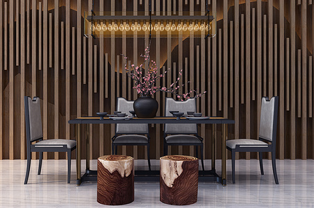 Z03-0103新中式餐桌椅木墩花瓶吊灯