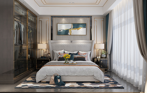 Z26-0103后现代欧式轻奢卧室床床头柜衣柜衣服皮包