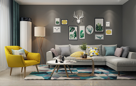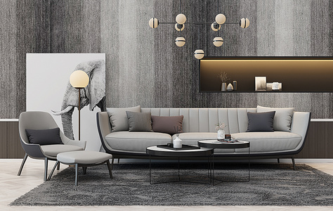 Z01-0109北欧沙发茶几落地灯空调挂画鹿头客厅