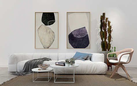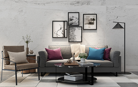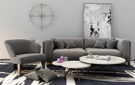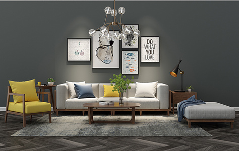Z14-0110北欧沙发茶几吊灯花瓶摆件组合
