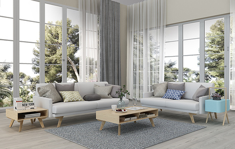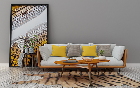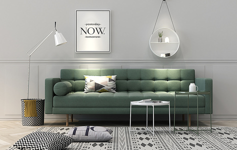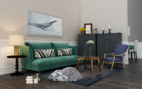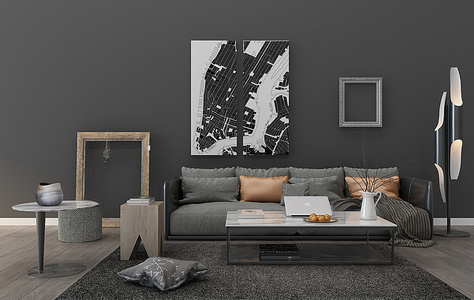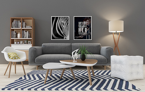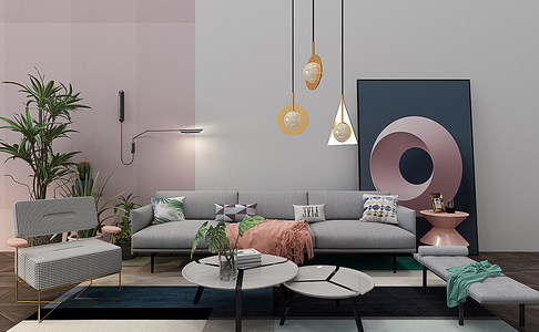 Z03-0109北欧现代沙发茶几植物盆栽小吊灯毛毯