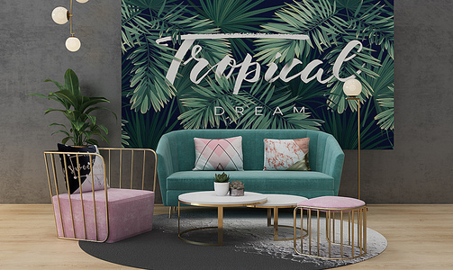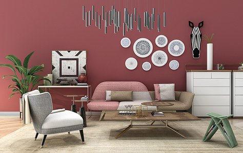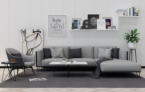 Z04-0109北欧现代沙发茶几休闲椅盆栽花架墙饰