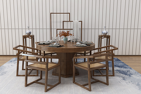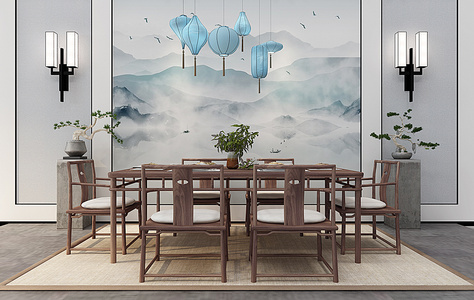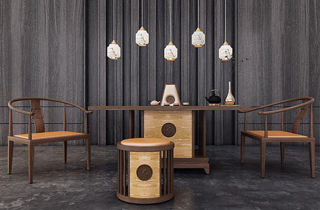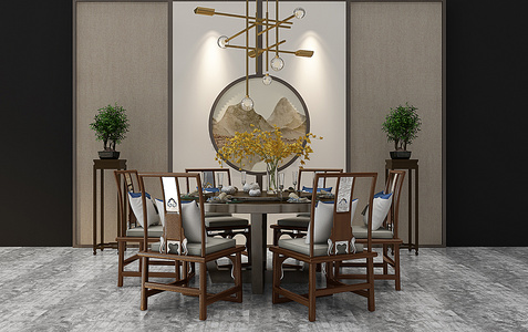 Z04-0103新中式餐桌椅子吊灯盆景花瓶