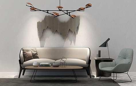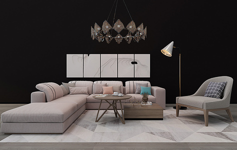 Z09-0110北欧现代沙发茶几水晶吊灯组合
