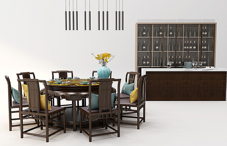 Z14-0103中式实木圆形餐桌椅组合餐边柜