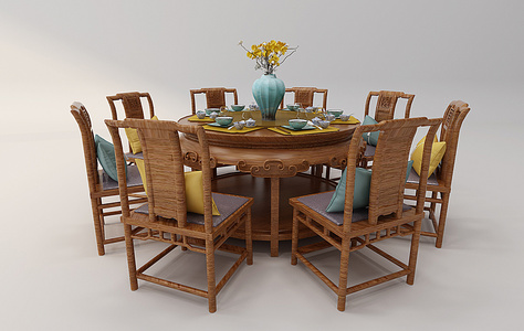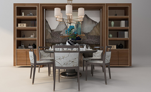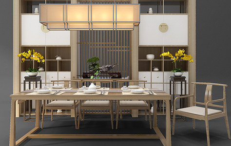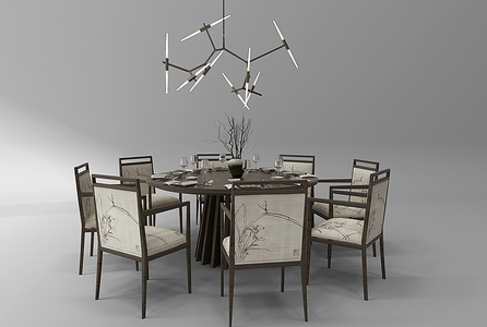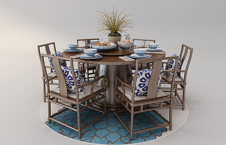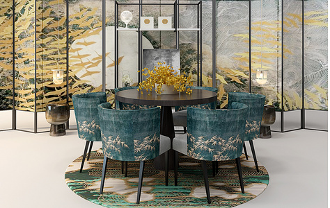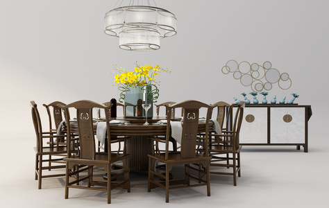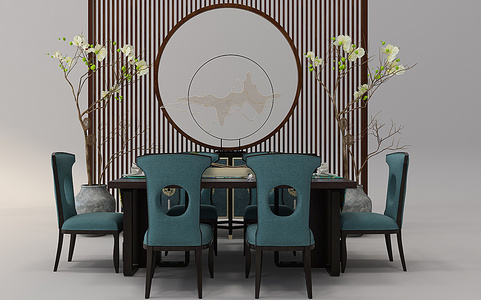 Z19-0103新中式餐桌椅组合花架蝴蝶兰餐具