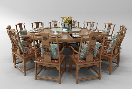 Z21-0103中式实木圆形餐桌椅组合太师椅