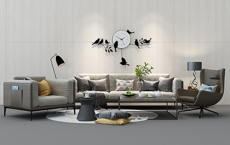 Z21-0109北欧沙发茶几小鸟挂钟挂饰