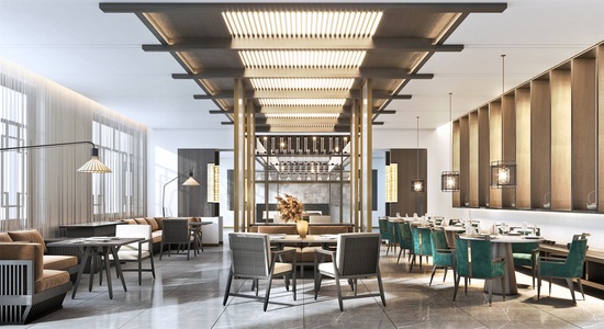新中式酒店餐厅 大堂吧,餐桌椅