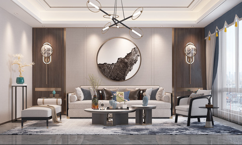 新中式客厅,沙发茶几卧榻沙发凳