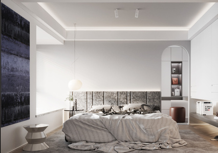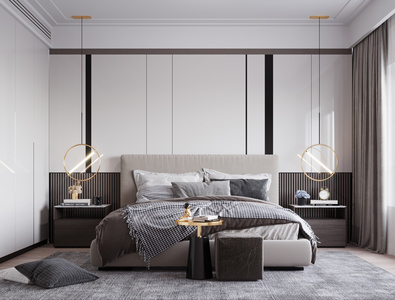 轻奢卧室,双人床,床头柜