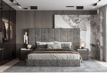 现代卧室,双人床,地毯
