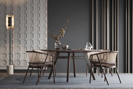 新中式藤编编织餐厅圆形餐桌椅子