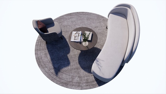沙发组合 异形沙发 圆形地毯 休闲沙发 茶几摆件