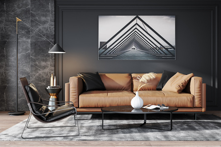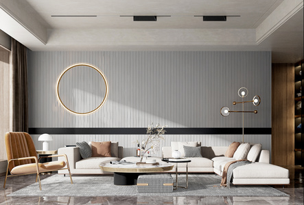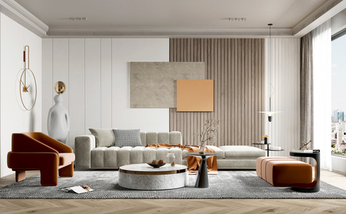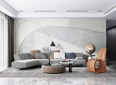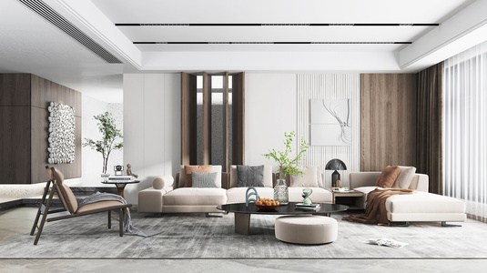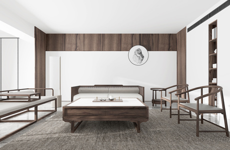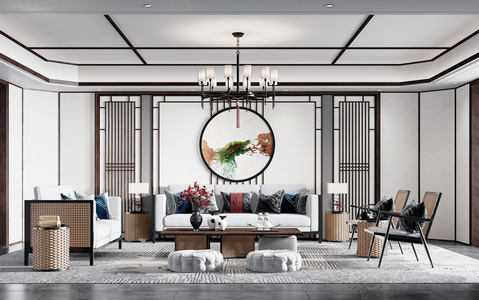 新中式客厅,布艺沙发单人沙发椅子茶几背景墙