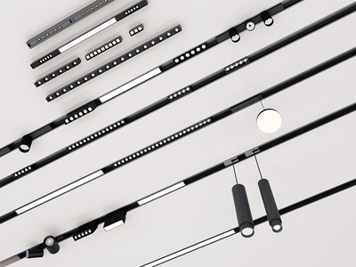 现代极简线型灯磁吸轨道射灯灯组合