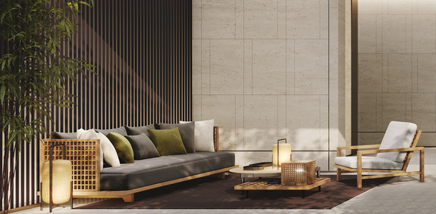 现代庭院户外实木原木沙发茶几组合