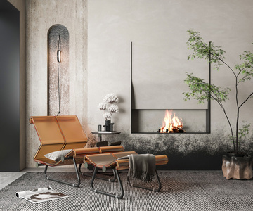 现代躺椅,盆栽,书籍,脚凳,