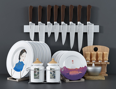 现代风格厨具 盘子 调料罐 餐具
