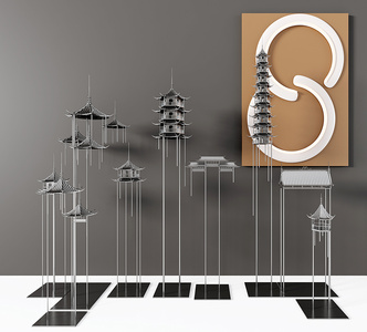 新中式铁艺屋檐,阁楼摆件, (1)