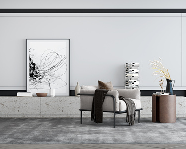 现代单人沙发边几组合