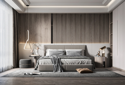 现代轻奢书房,书桌椅,书柜,台灯显示器
