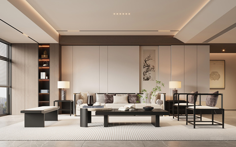 新中式客厅su模型