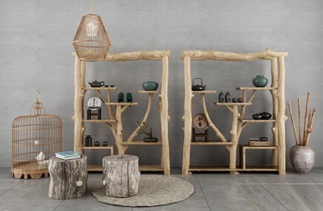 自然风树枝装饰架茶叶柜su模型