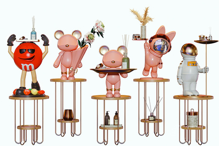 现代公仔米老鼠小狗熊潮玩雕塑饰品摆件