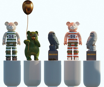 现代猫头鹰小熊暴力熊公仔潮玩雕塑饰品摆件