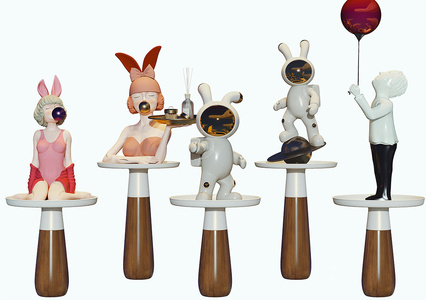 现代兔子兔女郎小人儿潮玩雕塑饰品摆件
