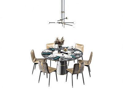 现代轻奢圆形餐桌椅