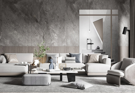 30现代沙发茶几组合,转角多人沙发组合,茶几,布面方凳,单人椅,沙发椅,落地灯,现代挂画,装饰画,墙饰