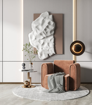 36现代绒布单椅,沙发椅,圆几,角几,边几,花瓶,挂画,装饰画,立体画,地毯,吊灯