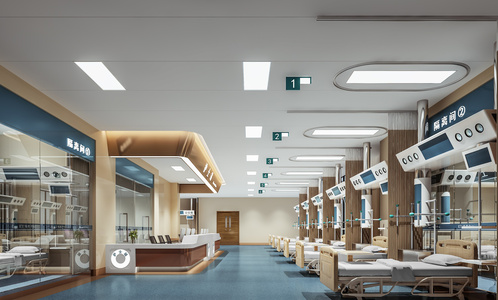 SY09-现代医院隔离间,床位,病床,医疗设备,接待台