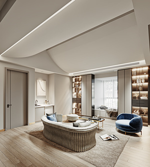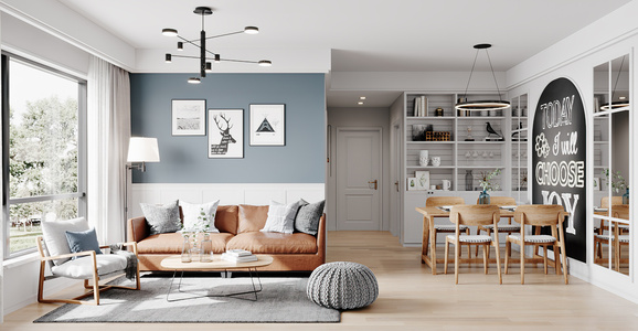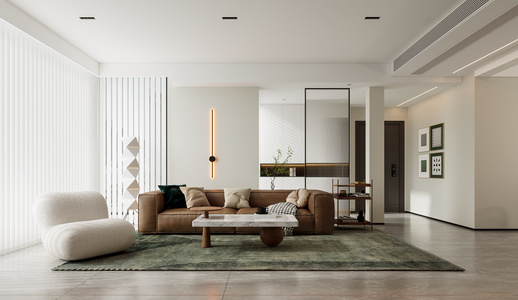 现代客餐厅,沙发茶几地毯圆形餐桌椅