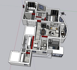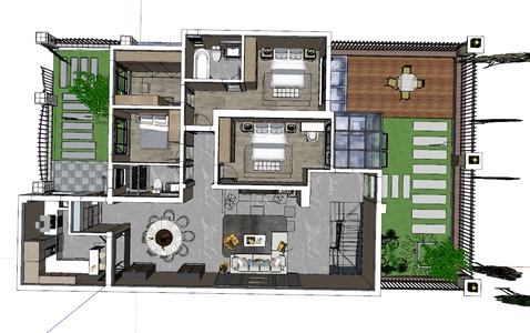 现代家装整体轴侧鸟瞰空间SU完整