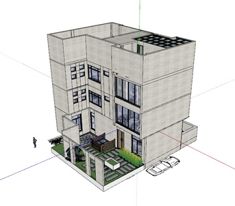 现代别墅家装整体轴侧鸟瞰图方案庭院 (1)