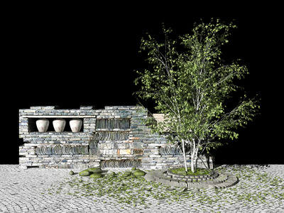 景观树残破院墙围墙