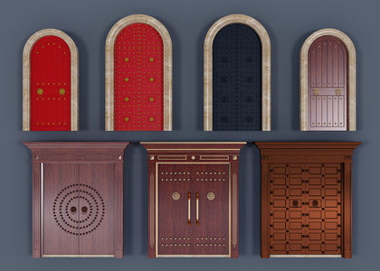中式古典红漆大门