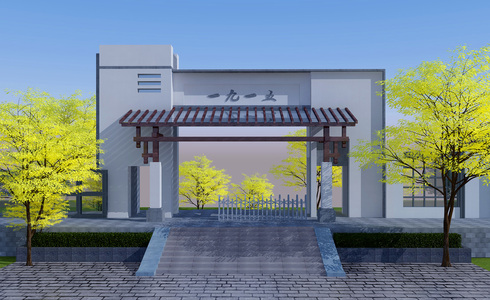 新中式大公园,别墅入户大门门头,门楼,,树