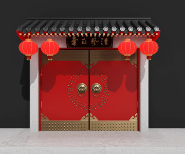 中式古建门头,红漆,寺庙大门,