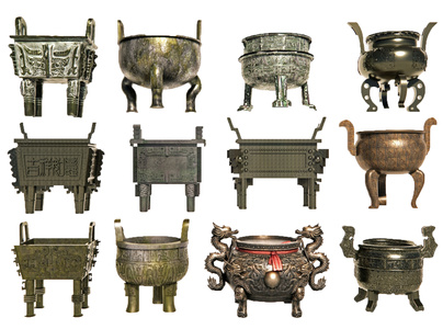 18-中式其他景观小品_鼎_青铜鼎方鼎圆鼎_三角鼎黄铜鼎_香炉青铜器_铜炉祭祀佛龛3D模型vrrr