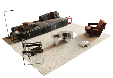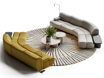 08-现代意式沙发组合_沙发茶几组合_竹节沙发_圆形地毯3D模型crrr