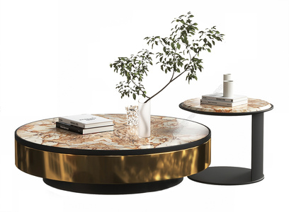 14-现代金属茶几,圆形茶几书本,花瓶摆件