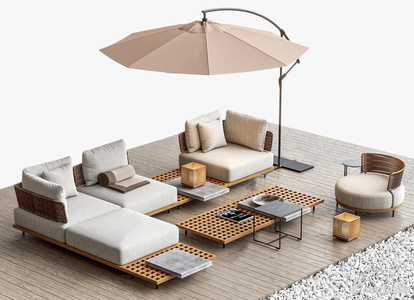 06-现代户外沙发茶几组合_遮阳伞,户外露台家具su模型