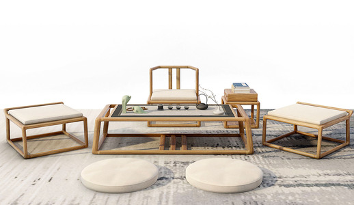 Z27-0823新中式茶桌椅书柜树墩