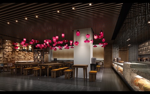 40-10-10中式餐厅小吃街明档牌匾檐口餐桌椅
