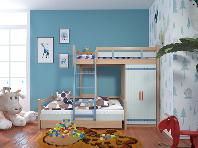 Z22-0716现代欧式儿童上下床,上下铺,地毯机器人滑板车