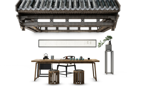 Z11-0629中式茶桌中式屋檐